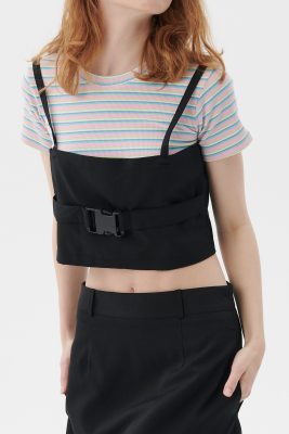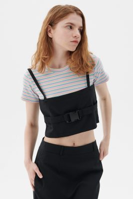 Mia Striped Mini Skirt Front zip, hook close Elastic band on back Product Specification : 100% Polyester Flat measurement : […]